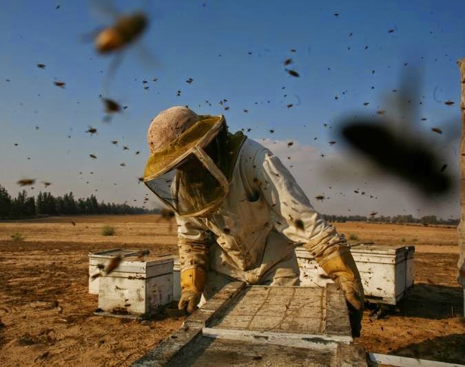 | Photo: Porat Aviary Handling bees with extreme care at the Porat Aviary in Israel's Central Arava desert. |