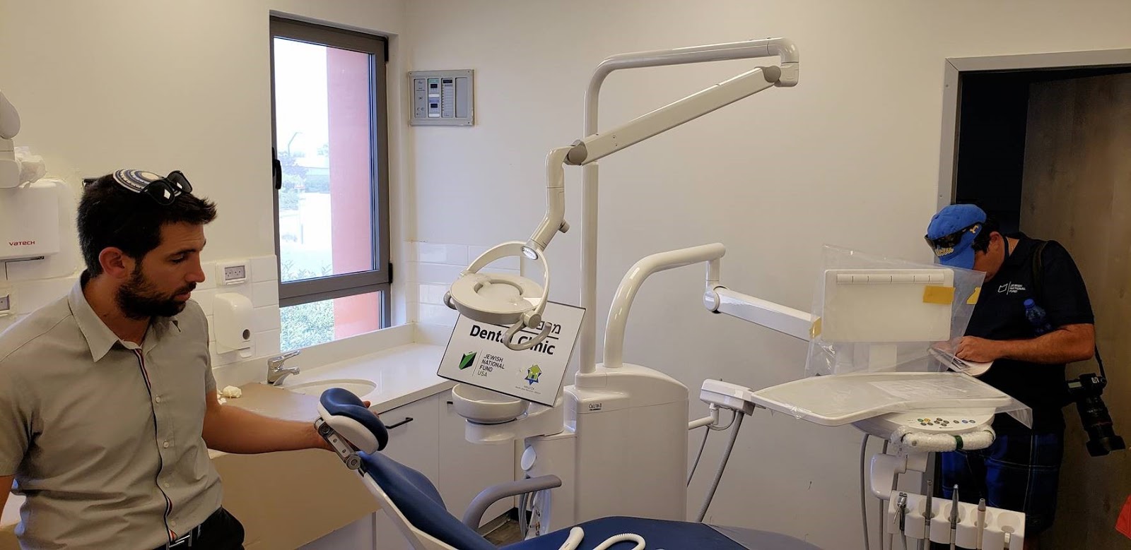 Photo: Joshua Robbin Marks Yedidya Harush, JNF Halutza liaison for Negev community development, shows us the new dental clinic funded with the help of JNF USA. |
