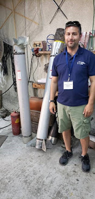 During our tour of Halutza, we visited a metal sculptor, Yaron Bob, who owns a business called Rockets into Roses that turns rockets into sculptures. He showed us the different types of rockets and mortar shells fired from Gaza as well as Iron Dome missiles that Israel uses to shoot down the rockets before they land. Besides Qassam and other types of rockets and mortars, he showed us an upgraded Grad rocket that was fired from Gaza that was made in China and smuggled into Gaza by Iran.